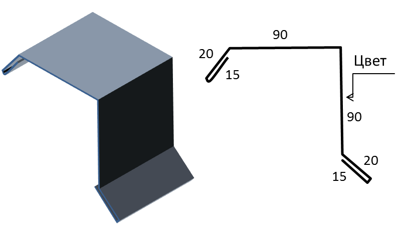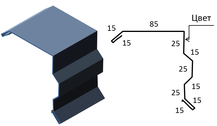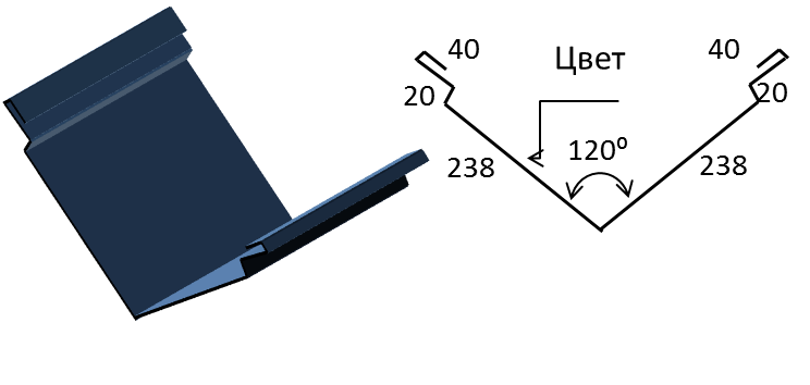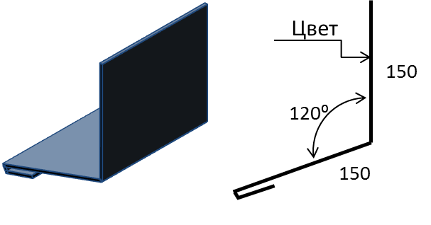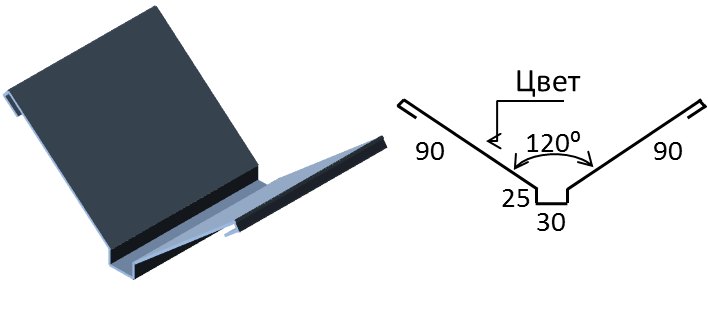 Необходима для установки в местах стыков отрицательных углов, защищает стык от попадания воды в подкровельное пространство. Устанавливается до укладки листов металлочерепицы или профнастила.