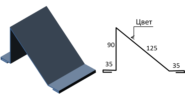 Конек для кровли предназначен для соединения скатов крыши в самой верхней точке - обязательный элемент для крыш с двумя и более скатами. Конёк кровли - самый первый элемент крыши, который принимает на себя осадки, он делит поток воды и снежные массы и направляет их вниз по поверхности кровли.